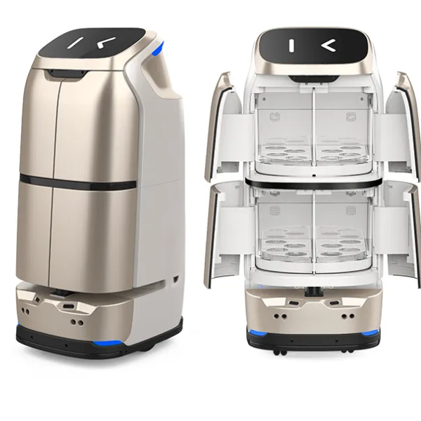 multi-tray design, it ensures quick, safe, and efficient service. With voice interaction, LED alerts, autocharging, and real-time route optimization, the T8 enhances efficiency, consistency, and guest